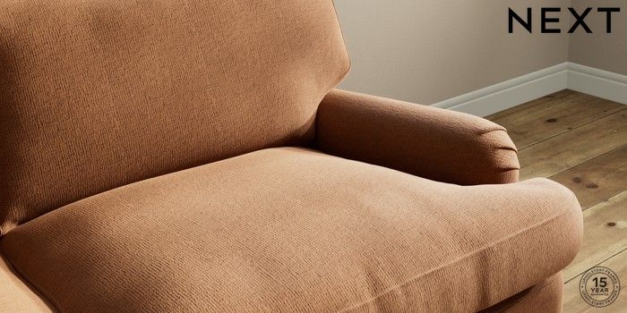 7.0.3 Buy Sadie Deep Relaxed Sit 3 Seater Sofa Ripple Chenille Mid Rust Brown High Slim Turned - Light from the Next UK online shop Click here to use our accessible website