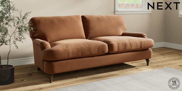 7.0.3 Buy Sadie Deep Relaxed Sit 3 Seater Sofa Ripple Chenille Mid Rust Brown High Slim Turned - Mid from the Next UK online shop Click here to use our accessible website