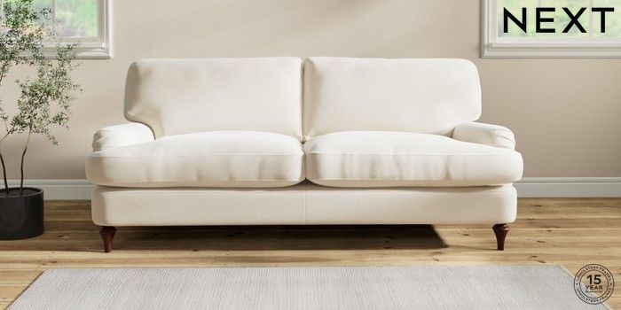 6.12.1 Buy Sadie Deep Relaxed Sit 3 Seater Sofa Ripple Chenille Oyster High Slim Turned - Dark Brown from the Next UK online shop Click here to use our accessible website