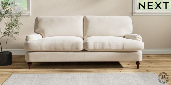 6.12.1 Buy Sadie Deep Relaxed Sit 3 Seater Sofa Studio Chenille Oyster High Slim Turned - Dark Brown from the Next UK online shop Click here to use our accessible website
