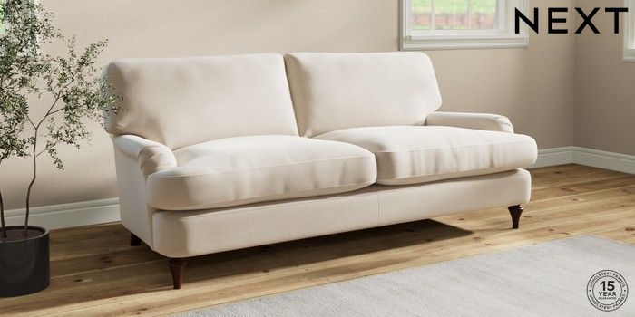 7.0.3 Buy Sadie Deep Relaxed Sit 3 Seater Sofa Studio Chenille Oyster High Slim Turned - Dark Brown from the Next UK online shop Click here to use our accessible website