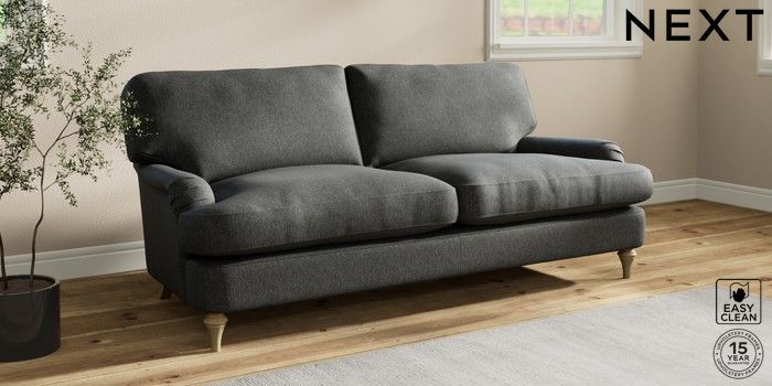 7.0.3 Buy Sadie Deep Relaxed Sit 3 Seater Sofa Tweedy Blend Easy Clean Charcoal Grey High Slim Turned - Light from the Next UK online shop Click here to use our accessible website