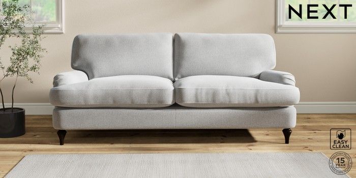 6.12.1 Buy Sadie Deep Relaxed Sit 3 Seater Sofa Tweedy Blend Easy Clean Light Silver Grey High Slim Turned - Dark from the Next UK online shop Click here to use our accessible website