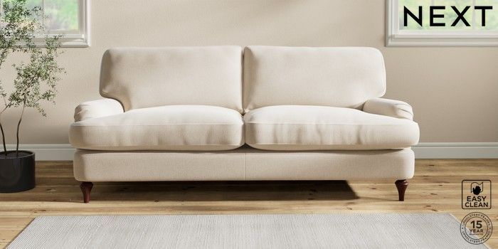 6.12.1 Buy Sadie Deep Relaxed Sit 3 Seater Sofa Tweedy Blend Easy Clean Oyster High Slim Turned - Dark Brown from the Next UK online shop Click here to use our accessible website