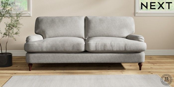 6.12.1 Buy Sadie Deep Relaxed Sit 3 Seater Sofa Tweedy Chenille Mid Grey High Slim Turned - Dark Brown from the Next UK online shop Click here to use our accessible website