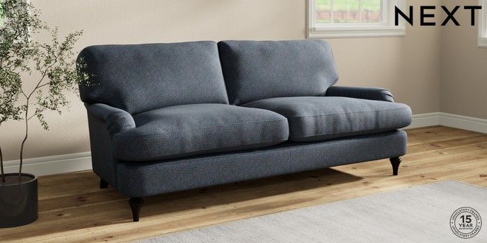 7.0.3 Buy Sadie Deep Relaxed Sit 3 Seater Sofa Tweedy Chenille Navy Blue High Slim Turned - Dark from the Next UK online shop Click here to use our accessible website