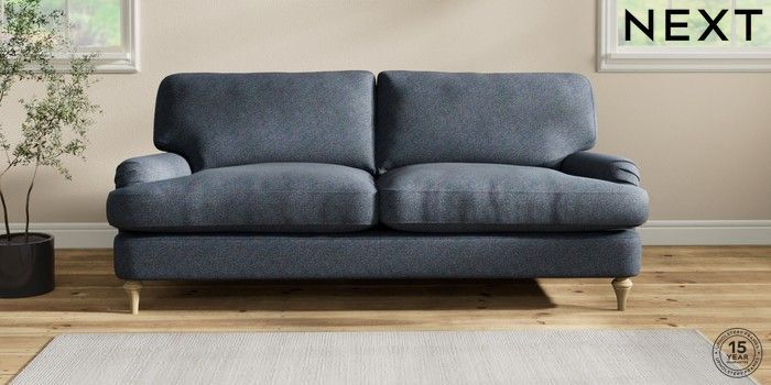 6.12.1 Buy Sadie Deep Relaxed Sit 3 Seater Sofa Tweedy Chenille Navy Blue High Slim Turned - Light from the Next UK online shop Click here to use our accessible website