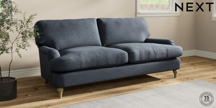 7.0.3 Buy Sadie Deep Relaxed Sit 3 Seater Sofa Tweedy Chenille Navy Blue High Slim Turned - Light from the Next UK online shop Click here to use our accessible website