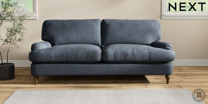 6.12.1 Buy Sadie Deep Relaxed Sit 3 Seater Sofa Tweedy Chenille Navy Blue High Slim Turned - Mid from the Next UK online shop Click here to use our accessible website