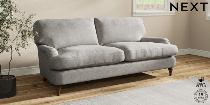 7.0.3 Buy Sadie Deep Relaxed Sit 3 Seater Sofa Woven Chenille Easy Clean Light Grey High Slim Turned - Mid from the Next UK online shop Click here to use our accessible website