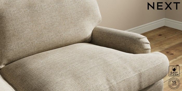 7.0.3 Buy Sadie Deep Relaxed Sit 3 Seater Sofa Woven Chenille Easy Clean Mid Natural High Slim Turned - Dark from the Next UK online shop Click here to use our accessible website