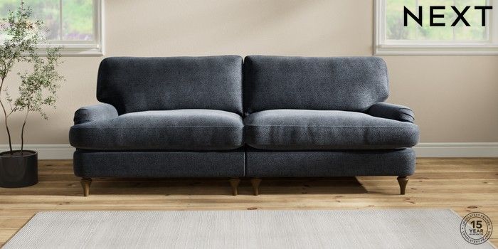 6.12.1 Buy Sadie Deep Relaxed Sit 4 Seater Sofa Boucle Chenille Dark Slate Blue High Slim Turned - Mid from the Next UK online shop Click here to use our accessible website