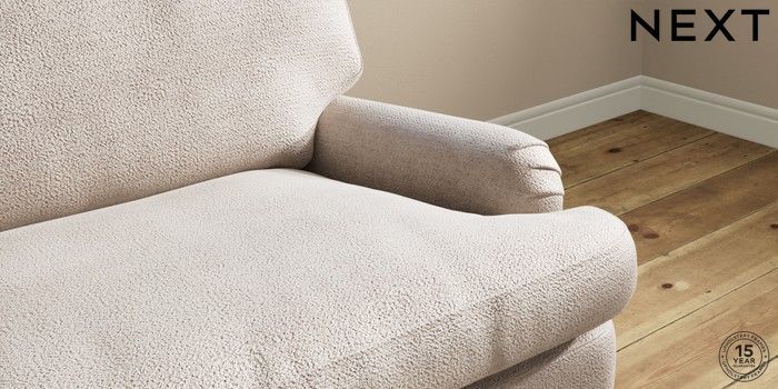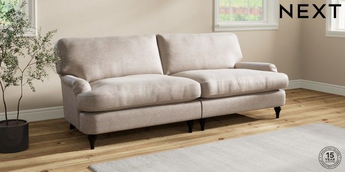 7.0.3 Buy Sadie Deep Relaxed Sit 4 Seater Sofa Boucle Chenille Light Natural High Slim Turned - Dark from the Next UK online shop Click here to use our accessible website