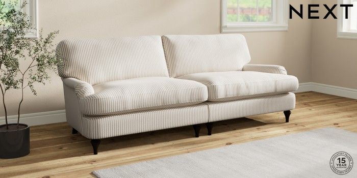 7.0.3 Buy Sadie Deep Relaxed Sit 4 Seater Sofa Chenille Stripe Natural High Slim Turned - Dark from the Next UK online shop Click here to use our accessible website