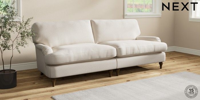 7.0.3 Buy Sadie Deep Relaxed Sit 4 Seater Sofa Chenille Stripe Natural High Slim Turned - Mid from the Next UK online shop Click here to use our accessible website