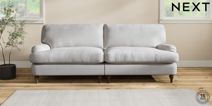 6.12.1 Buy Sadie Deep Relaxed Sit 4 Seater Sofa Chenille Stripe Slate Blue High Slim Turned - Mid from the Next UK online shop Click here to use our accessible website