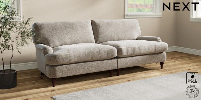 7.0.3 Buy Sadie Deep Relaxed Sit 4 Seater Sofa Chunky Boucle Easy Clean Dove High Slim Turned - Dark Brown from the Next UK online shop Click here to use our accessible website