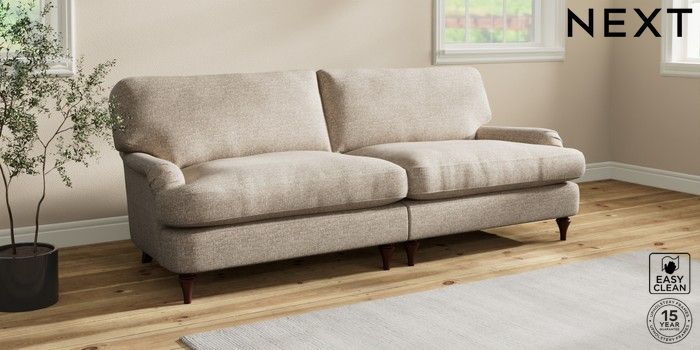 7.0.3 Buy Sadie Deep Relaxed Sit 4 Seater Sofa Chunky Boucle Easy Clean Mid Natural High Slim Turned - Dark Brown from the Next UK online shop Click here to use our accessible website