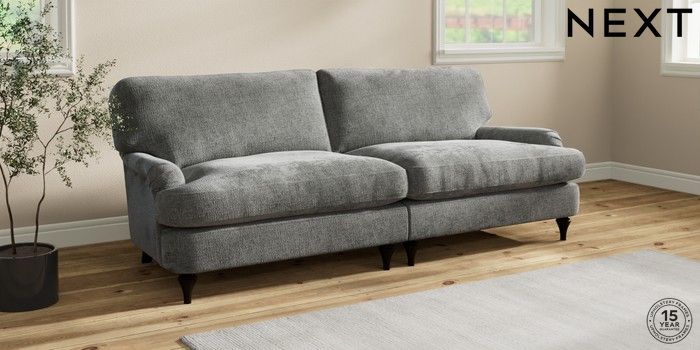 7.0.3 Buy Sadie Deep Relaxed Sit 4 Seater Sofa Chunky Chenille Dark Grey High Slim Turned - Dark from the Next UK online shop Click here to use our accessible website