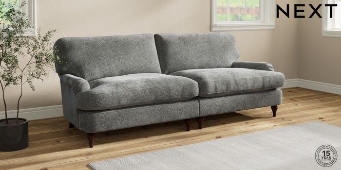7.0.3 Buy Sadie Deep Relaxed Sit 4 Seater Sofa Chunky Chenille Dark Grey High Slim Turned - Dark Brown from the Next UK online shop Click here to use our accessible website