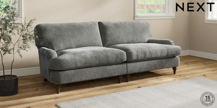 7.0.3 Buy Sadie Deep Relaxed Sit 4 Seater Sofa Chunky Chenille Dark Grey High Slim Turned - Mid from the Next UK online shop Click here to use our accessible website
