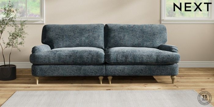 6.12.1 Buy Sadie Deep Relaxed Sit 4 Seater Sofa Chunky Chenille Dark Navy Blue High Slim Turned - Light from the Next UK online shop Click here to use our accessible website