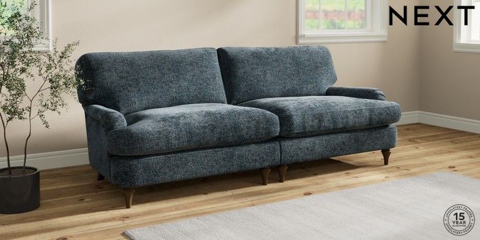 7.0.3 Buy Sadie Deep Relaxed Sit 4 Seater Sofa Chunky Chenille Dark Navy Blue High Slim Turned - Mid from the Next UK online shop Click here to use our accessible website