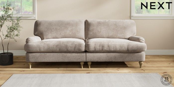 6.12.1 Buy Sadie Deep Relaxed Sit 4 Seater Sofa Chunky Chenille Light Dove High Slim Turned - Light from the Next UK online shop Click here to use our accessible website