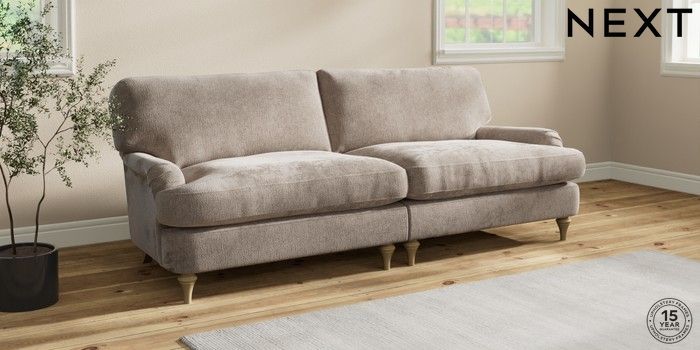 7.0.3 Buy Sadie Deep Relaxed Sit 4 Seater Sofa Chunky Chenille Light Dove High Slim Turned - Light from the Next UK online shop Click here to use our accessible website