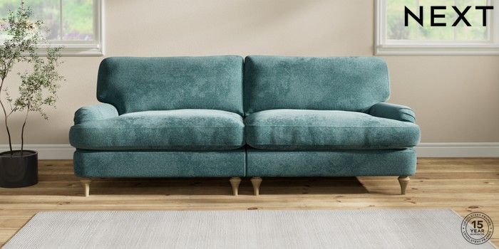 6.12.1 Buy Sadie Deep Relaxed Sit 4 Seater Sofa Chunky Chenille Mid Teal Green High Slim Turned - Light from the Next UK online shop Click here to use our accessible website