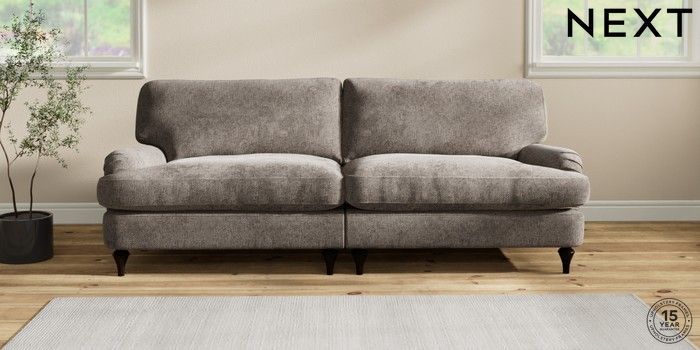 6.12.1 Buy Sadie Deep Relaxed Sit 4 Seater Sofa Chunky Chenille Mink Brown High Slim Turned - Dark from the Next UK online shop Click here to use our accessible website