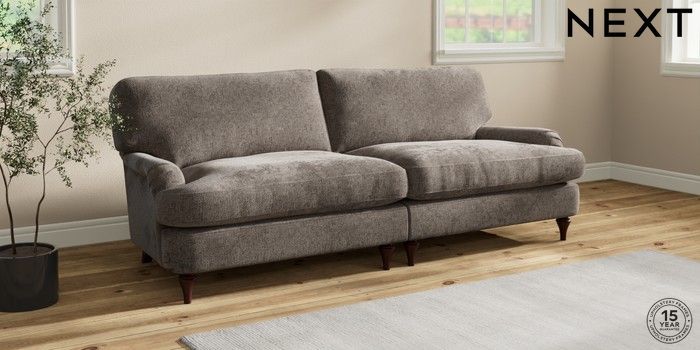 7.0.3 Buy Sadie Deep Relaxed Sit 4 Seater Sofa Chunky Chenille Mink Brown High Slim Turned - Dark Brown from the Next UK online shop Click here to use our accessible website