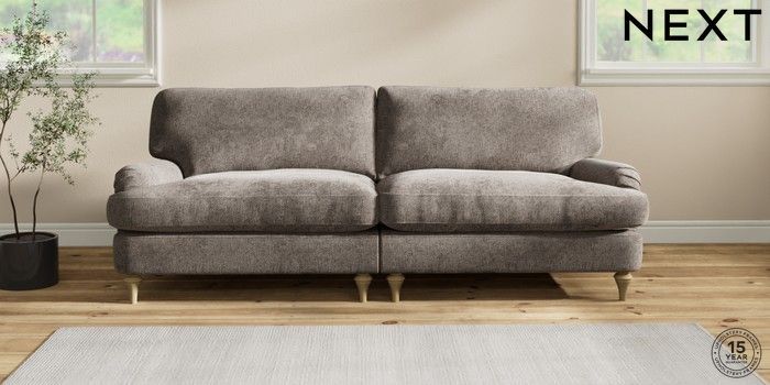 6.12.1 Buy Sadie Deep Relaxed Sit 4 Seater Sofa Chunky Chenille Mink Brown High Slim Turned - Light from the Next UK online shop Click here to use our accessible website