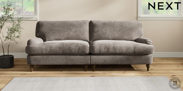 6.12.1 Buy Sadie Deep Relaxed Sit 4 Seater Sofa Chunky Chenille Mink Brown High Slim Turned - Mid from the Next UK online shop Click here to use our accessible website