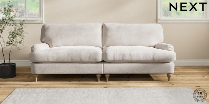 6.12.1 Buy Sadie Deep Relaxed Sit 4 Seater Sofa Chunky Chenille Oyster High Slim Turned - Light from the Next UK online shop Click here to use our accessible website