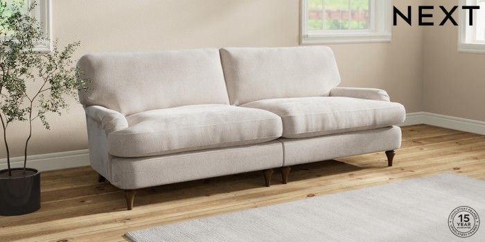 7.0.3 Buy Sadie Deep Relaxed Sit 4 Seater Sofa Chunky Chenille Oyster High Slim Turned - Mid from the Next UK online shop Click here to use our accessible website