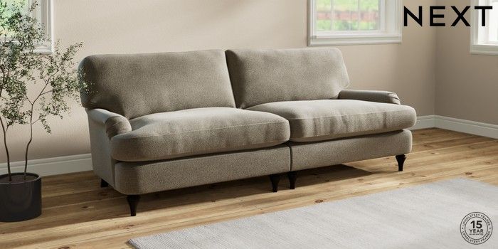 7.0.3 Buy Sadie Deep Relaxed Sit 4 Seater Sofa Chunky Marl Light Olive Green High Slim Turned - Dark from the Next UK online shop Click here to use our accessible website