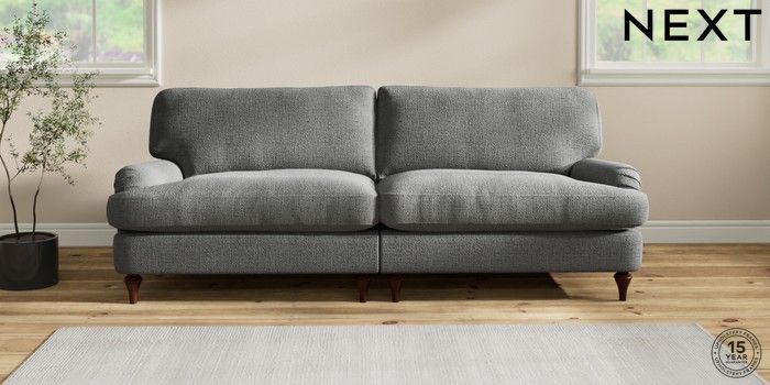 6.12.1 Buy Sadie Deep Relaxed Sit 4 Seater Sofa Chunky Texture Dark Grey High Slim Turned - Dark Brown from the Next UK online shop Click here to use our accessible website