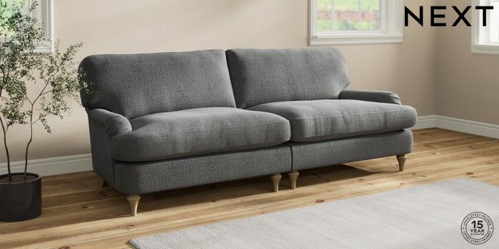 7.0.3 Buy Sadie Deep Relaxed Sit 4 Seater Sofa Chunky Texture Dark Grey High Slim Turned - Light from the Next UK online shop Click here to use our accessible website