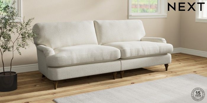 7.0.3 Buy Sadie Deep Relaxed Sit 4 Seater Sofa Chunky Texture Oyster High Slim Turned - Mid from the Next UK online shop Click here to use our accessible website