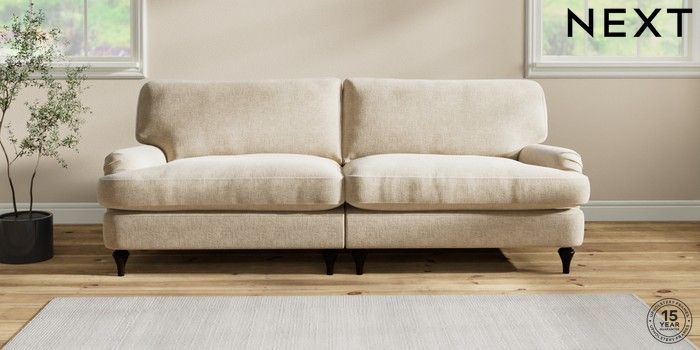 6.12.1 Buy Sadie Deep Relaxed Sit 4 Seater Sofa Chunky Weave Cream High Slim Turned - Dark from the Next UK online shop Click here to use our accessible website