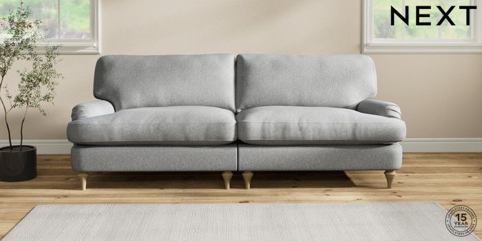 6.12.1 Buy Sadie Deep Relaxed Sit 4 Seater Sofa Chunky Weave Mid Grey High Slim Turned - Light from the Next UK online shop Click here to use our accessible website