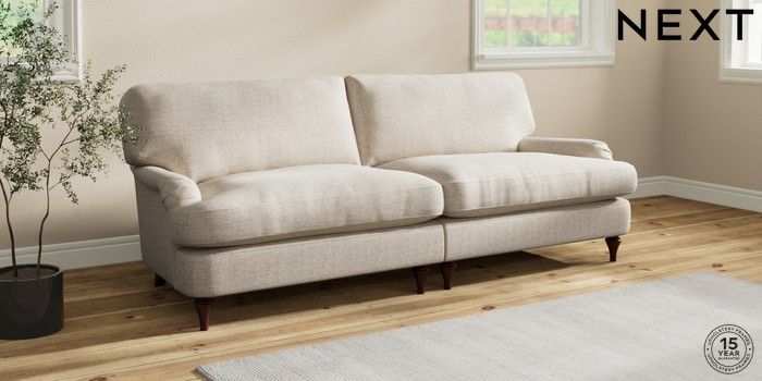7.0.3 Buy Sadie Deep Relaxed Sit 4 Seater Sofa Chunky Weave Mid Natural High Slim Turned - Dark Brown from the Next UK online shop Click here to use our accessible website