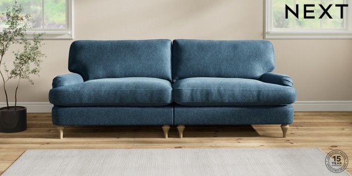 6.12.1 Buy Sadie Deep Relaxed Sit 4 Seater Sofa Cotswold Chenille Dark Blue High Slim Turned - Light from the Next UK online shop Click here to use our accessible website