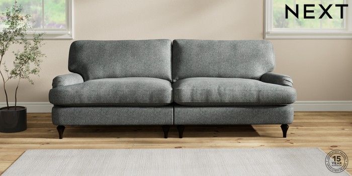 6.12.1 Buy Sadie Deep Relaxed Sit 4 Seater Sofa Cotswold Chenille Dark Grey High Slim Turned - Dark from the Next UK online shop Click here to use our accessible website