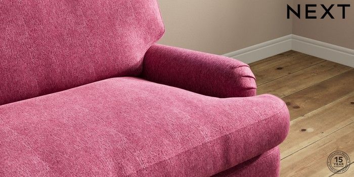 7.0.3 Buy Sadie Deep Relaxed Sit 4 Seater Sofa Cotswold Chenille Dark Raspberry Pink High Slim Turned - Dark from the Next UK online shop Click here to use our accessible website