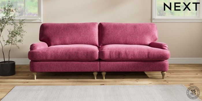 6.12.1 Buy Sadie Deep Relaxed Sit 4 Seater Sofa Cotswold Chenille Dark Raspberry Pink High Slim Turned - Light from the Next UK online shop Click here to use our accessible website