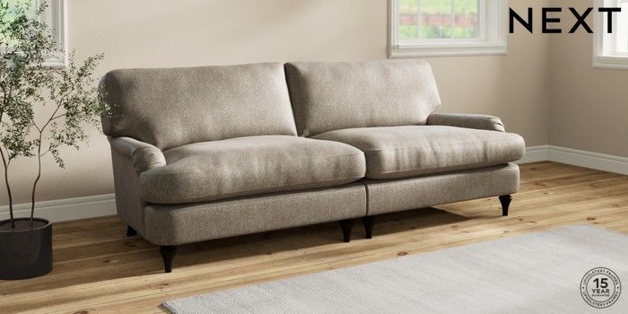 7.0.3 Buy Sadie Deep Relaxed Sit 4 Seater Sofa Cotswold Chenille Mid Mink Brown High Slim Turned - Dark from the Next UK online shop Click here to use our accessible website