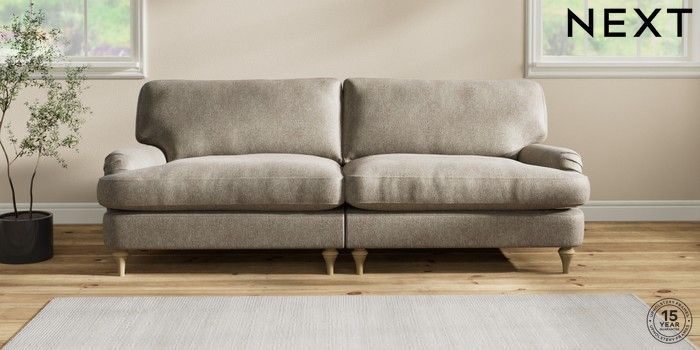 6.12.1 Buy Sadie Deep Relaxed Sit 4 Seater Sofa Cotswold Chenille Mid Mink Brown High Slim Turned - Light from the Next UK online shop Click here to use our accessible website