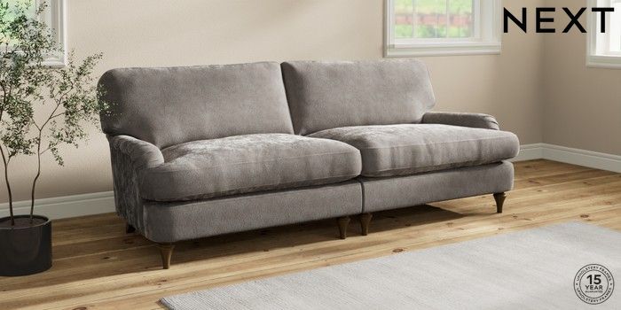 7.0.3 Buy Sadie Deep Relaxed Sit 4 Seater Sofa Distressed Velour French Grey High Slim Turned - Mid from the Next UK online shop Click here to use our accessible website